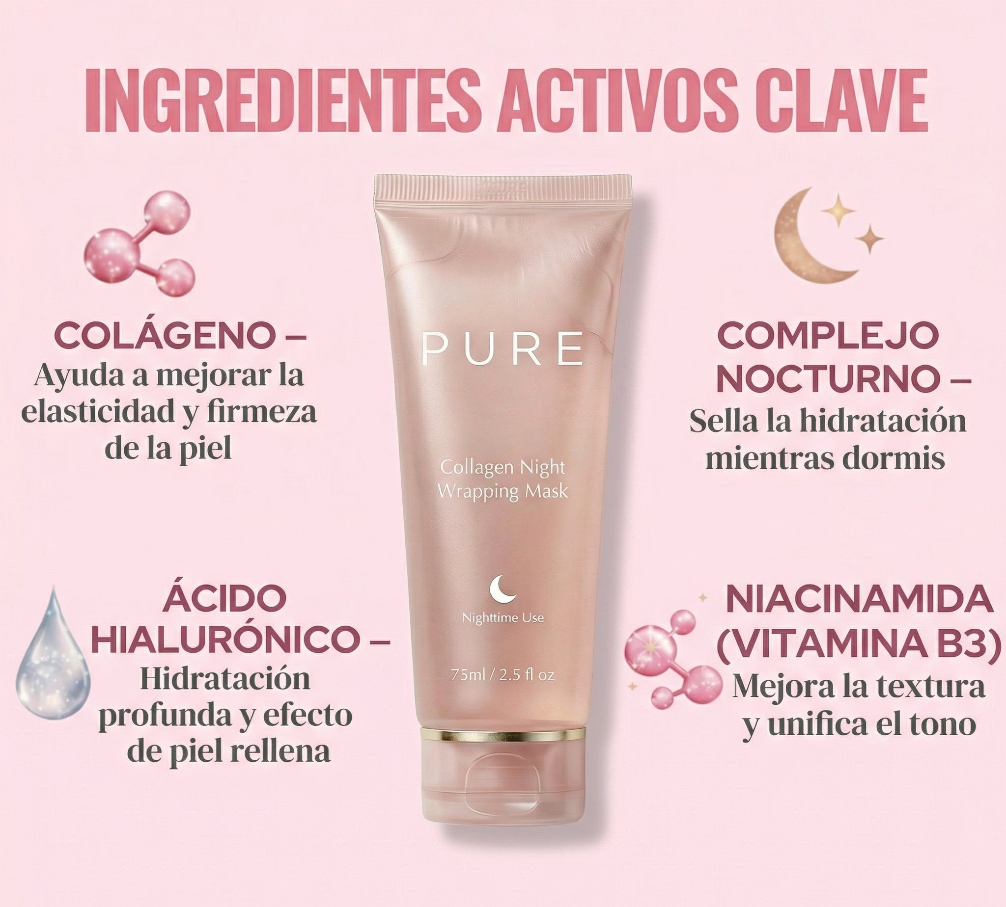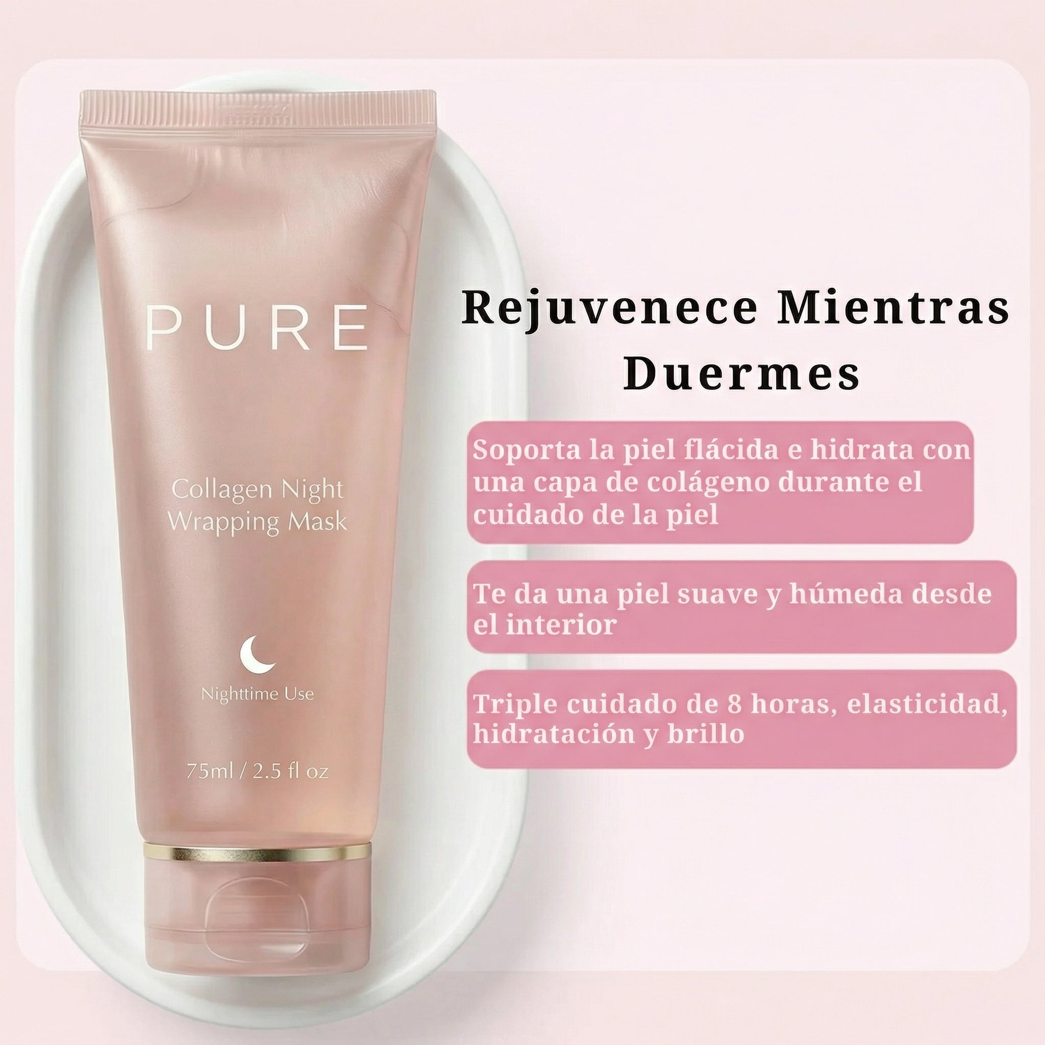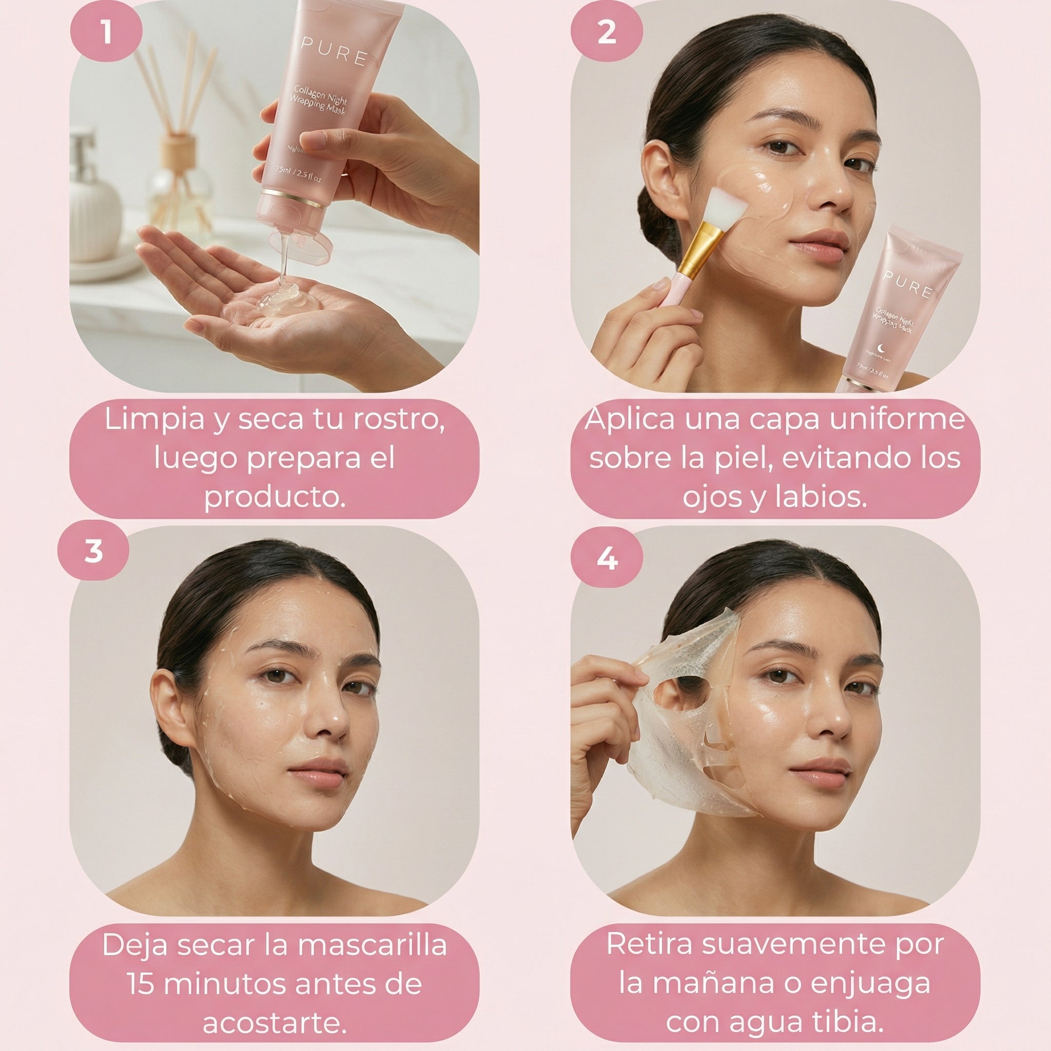 Muchas personas notan piel más suave, hidratada y con glow desde la primera noche. La firmeza y mejora de textura se ven con uso continuo.